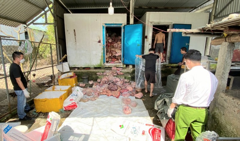 Tại thời điểm kiểm tra, chủ kho hàng không xuất trình được hóa đơn, chứng từ chứng minh nguồn gốc xuất xứ, không có giấy tờ chứng nhận đảm bảo vệ sinh an toàn thực phẩm, không thực hiện việc đóng dấu kiểm soát giết mổ lên thân thịt gia súc hoặc có dán tem vệ sinh thú y. Một số hàng hóa là thịt đã có dấu hiệu đổi màu và bốc mùi hôi thối.