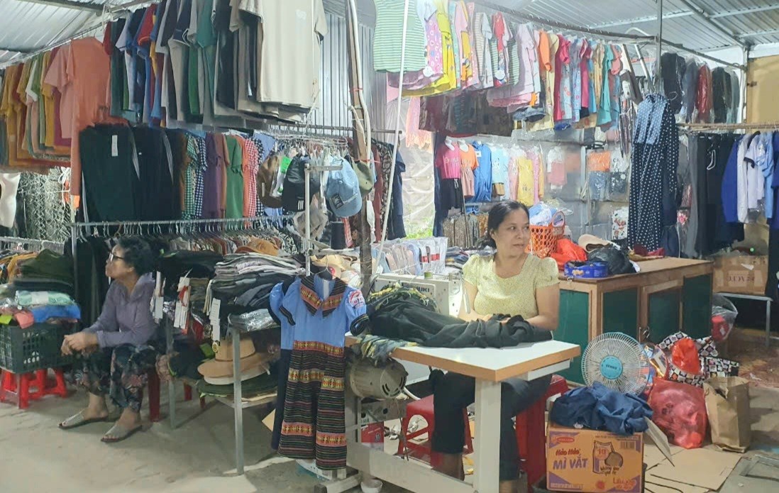 | Gian hàng kinh doanh áo quần, may mặc được sắp xếp ở khu vực đảm bảo tiêu chuẩn tại chợ Khe Tre. Ảnh: NT |