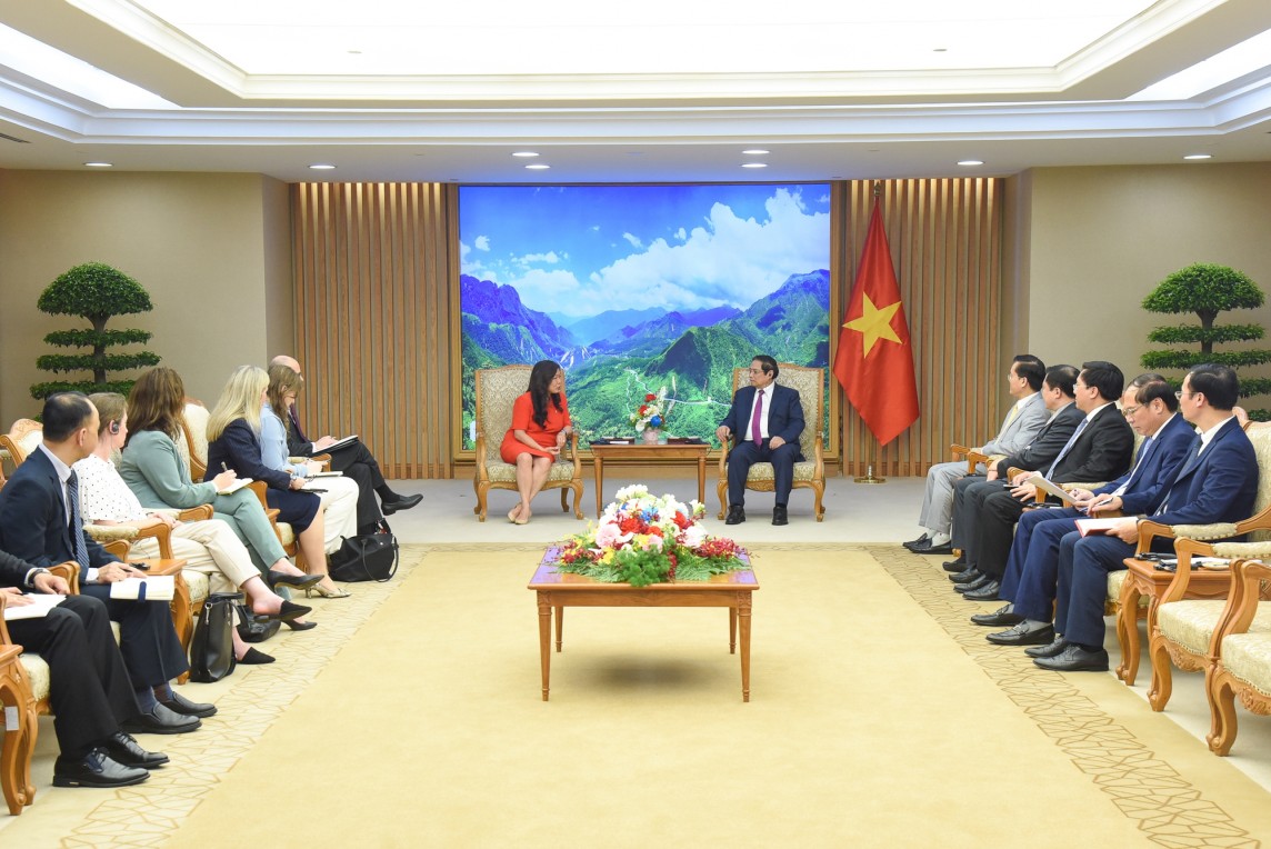 Tại trụ sở Chính phủ, Thủ tướng Chính phủ Phạm Minh Chính đã tiếp Bộ trưởng Phát triển kinh tế, thương mại quốc tế và xúc tiến xuất khẩu Canada Mary Ng đang thăm, làm việc tại Việt Nam, chiều 27/3.