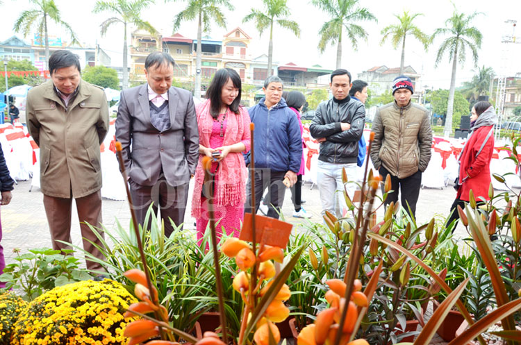 | Khách tham quan sắc hoa tại Hội hoa xuân Hoành Bồ 2018 |