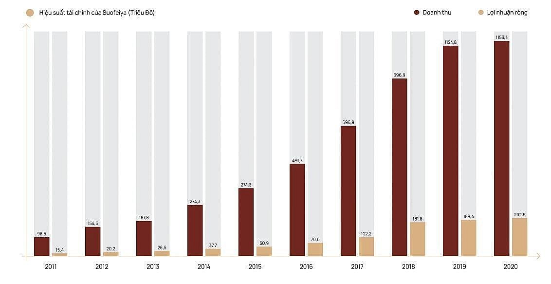 Theo Mordor Intelligence, quy mô thị trường nội thất cao cấp châu Á - Thái Bình Dương ước tính tăng trưởng với tốc độ CAGR là 4,55% trong giai đoạn dự báo (2024-2029). Đây là cơ hội tăng trưởng tuyệt đối của thương hiệu toàn cầu như Suofeiya. Với năng lực và tốc độ tăng trưởng mạnh mẽ, Suofeiya được niêm yết tại Sở Giao dịch chứng khoán Thâm Quyến vào năm 2011 và là công ty IPO đầu tiên trong ngành này (Mã chứng khoán: 002572). Trong vòng 1 thập kỷ, tính đến năm 2020, Tập đoàn đạt doanh thu hơn 1.1 tỷ USD; lợi nhuận ròng lợi nhuận tăng trưởng từ 15,4 triệu USD lên 202,5 triệu USD. Những con số ấn tượng này là thành quả sau hơn 43 năm xây dựng và phát triển thương hiệu Suofeiya, đưa các sản phẩm nội thất cao cấp đến toàn thế giới.