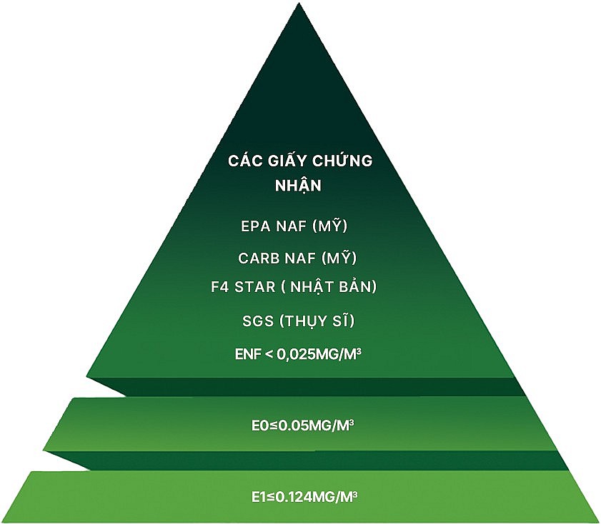 Theo thông tư 04/2023 về Ban hành Quy chuẩn kỹ thuật quốc gia về sản phẩm, hàng hóa vật liệu xây dựng được Bộ Xây dựng ban hành vào tháng 6/2023 và chính thức có hiệu lực từ ngày 1/1/2024 đề ra chi tiết về các mức giới hạn phát tán hàm lượng Formaldehyde có trong các loại gỗ công nghiệp tại Việt Nam là mức E1 và E2 (0,124 mg/m3). Trong khi đó, con số tiêu chuẩn của Suofeiya là 0.025 mg/m3, một con số ấn tượng, vượt trội so với các tiêu chuẩn đang được áp dụng tại Việt Nam. Thương hiệu được tổ chức EPA (Mỹ) phê duyệt chứng nhận NAF không Formaldehyde, bên cạnh đó là hàng loạt các giấy chứng nhận khắt khe đến từ Nhật Bản, Thụy Sỹ. Bằng khả năng nghiên cứu và phát triển sản phẩm ưu việt, Suofeiya mang đến cho thị trường Việt Nam chất lượng ván gỗ vượt chuẩn, an toàn tuyệt đối với sức khỏe người dùng, thiết lập nên một tiêu chuẩn mới cho ngành nội thất Việt Nam và ngành ván gỗ công nghiệp tại nước ta.