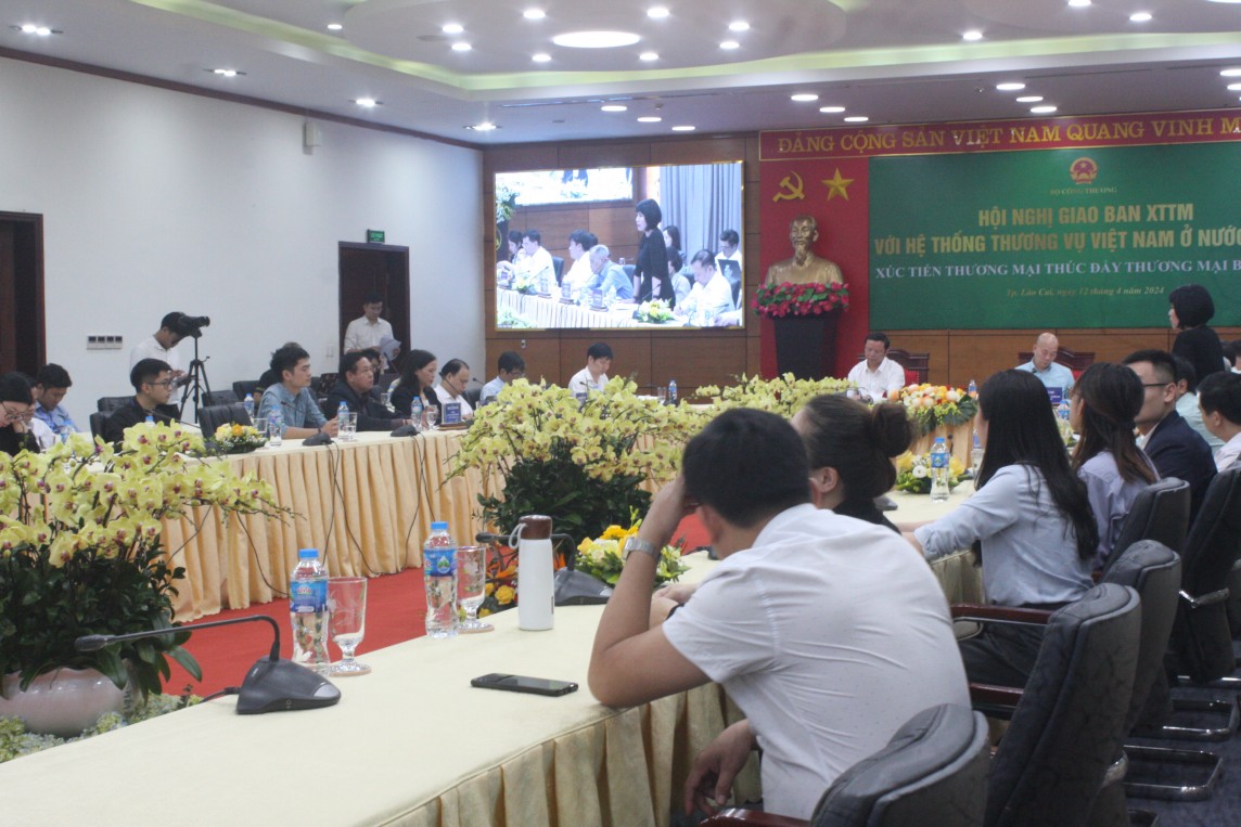 Chiều nay, ngày 14/4, Hội nghị giao ban Xúc tiến thương mại với hệ thống cơ quan thương vụ Việt Nam đã diễn ra tại Lào Cai, tiếp nối Hội nghị Xúc tiến thương mại phiên tổng thể trong sáng nay.