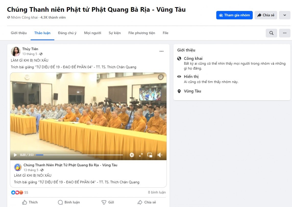 | Bài thuyết giảng dài 3p53s đăng tải trên trang Facebook Chúng thanh niên Phật tử Phật Qang Bà Rịa – Vũng Tàu - (Ảnh chụp màn hình) |