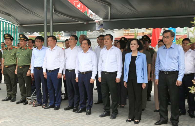 | Đồng chí Trương Thị Mai - Ủy viên Bộ Chính trị, Thường trực Ban Bí thư, Trưởng Ban Tổ chức Trung ương và đoàn tới viếng anh linh lãnh tụ Nguyễn Đức Cảnh tại khu lưu niệm đồng chí ở thị trấn Diêm Điền, huyện Thái Thụy, tỉnh Thái Bình. (Ảnh: Nam Hồng) |