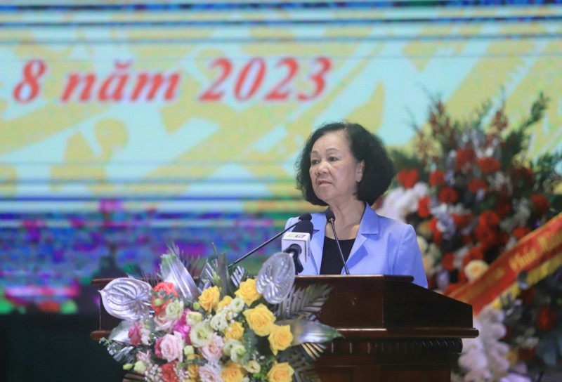 | Đồng chí Trương Thị Mai - Ủy viên Bộ Chính trị, Thường trực Ban Bí thư, Trưởng Ban Tổ chức Trung ương phát biểu tại ngày hội. (Ảnh: Nam Hồng) |