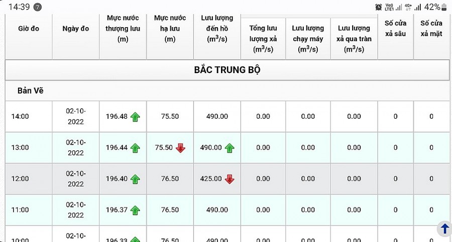 | Thông số thuỷ văn lúc 14h39 hôm nay |