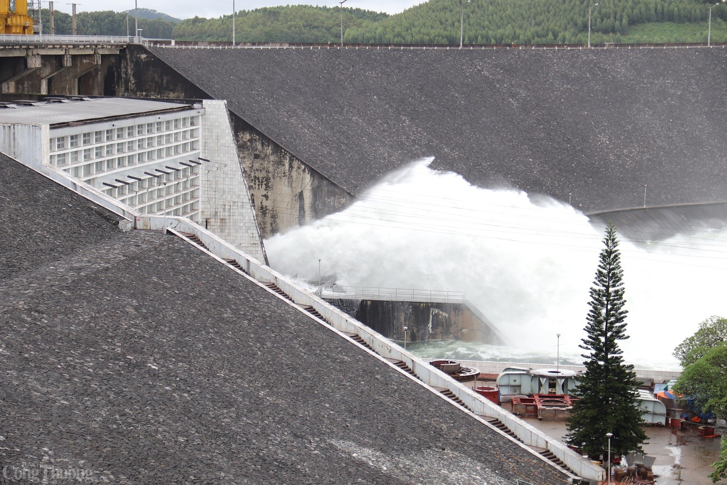 | Thủy điện Thác Bà xả lũ. Ảnh: Thanh Tuấn |