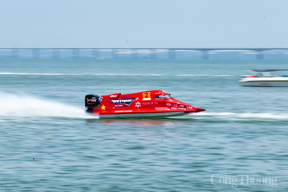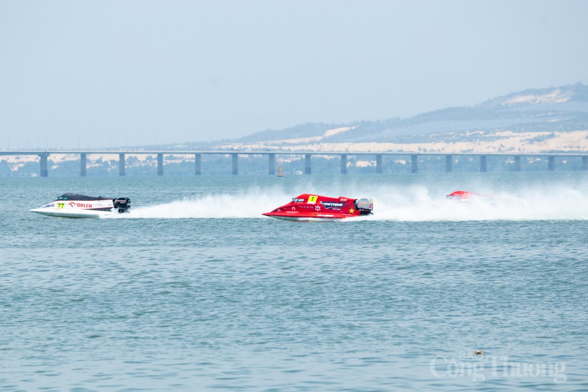 Sau phần khai mạc, đội F1H2O Bình Định – Việt Nam đã “chiêu đãi" khán giả đội nhà bằng những màn trình diễn đẹp mắt, tốc độ đẳng cấp ngay vòng đua nước rút để tính điểm cá nhân và đồng đội.