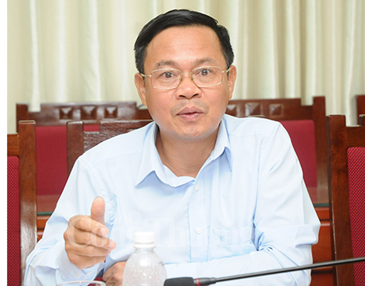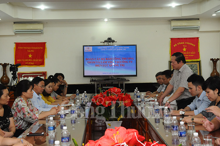 | Đồng chí Nguyễn Hữu Quý- Ủy viên BCH Đảng bộ Bộ Công Thương, Bí thư Đảng ủy, Tổng Biên tập Báo Công Thương - trao đổi tại buổi làm việc với Công ty Điện lực Quảng Trị |