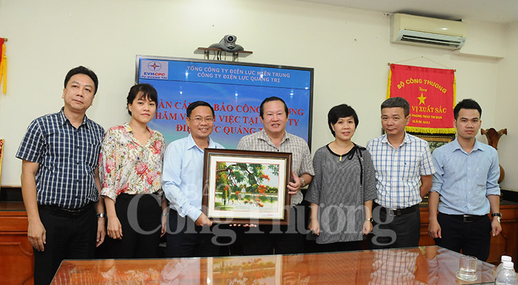 | Đại diện Đảng bộ Báo Công Thương trao quà cho Công ty Điện lực Quảng Trị |