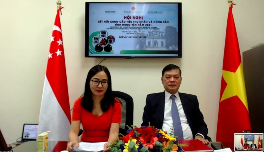 Trước đó, ngày 15/7/2021, tại điểm cầu Singapore, Đại sứ đặc mệnh toàn quyền Việt Nam tại Singapore, Thương vụ Việt Nam tại Singapore và đại diện 8 doanh nghiệp nhập khẩu lớn của địa bàn đã tham gia Hội nghị trực tuyến kết nối cung cầu, tiêu thụ nhãn lồng và nông sản tỉnh Hưng Yên. Đây là hoạt động xúc tiến thương mại quan trọng trong chuỗi các hoạt động quảng bá, xúc tiến tiêu thụ nông sản năm 2021 được các Bộ ngành phối hợp tổ chức nhằm hỗ trợ các địa phương giới thiệu các đặc sản Việt Nam ra thế giới, nâng cao giá trị xuất khẩu của trái cây Việt Nam. Mặt hàng trái nhãn của tỉnh Hưng Yên được Bộ Công Thương (Cục xúc tiến thương mại) hỗ trợ xây dựng tem truy xuất nguồn gốc, giúp hỗ trợ quảng bá và tăng cường sự nhận diện chỉ dẫn địa lý trái nhãn lồng Hưng Yên trên thị trường quốc tế.