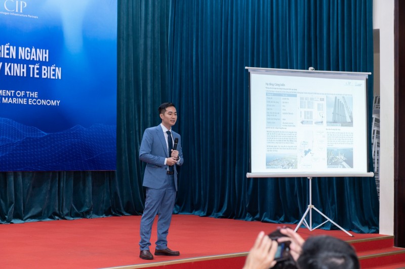 Ông Trần Xuân Bách - Phụ trách phát triển chuỗi cung ứng của CIP tại Việt Nam, phát biểu trong một hội thảo về điện gió ngoài khơi. Ảnh: MH |