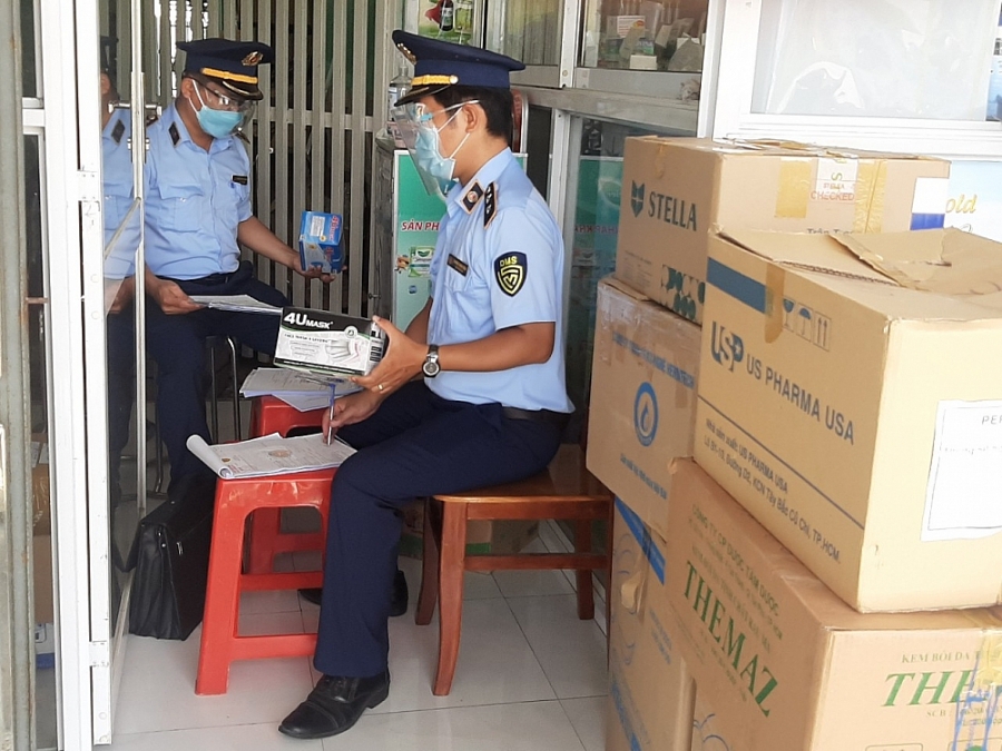 Trong ngày, lực lượng QLTT đã tăng cường kiểm tra mặt hàng trang thiết bị y tế. Qua thực hiện biện pháp nghiệp vụ quản lý địa bàn, Đội QLTT số 3 đã kiểm tra đột xuất đối với 2 quầy thuốc tây trên địa bàn huyện Tân Phước, tỉnh Tiền Giang. Kết quả, phát hiện tại các cơ sở này không thực hiện niêm yết giá mặt hàng khẩu trang y tế và nước rửa tay sát khuẩn, đang chờ xử lý.