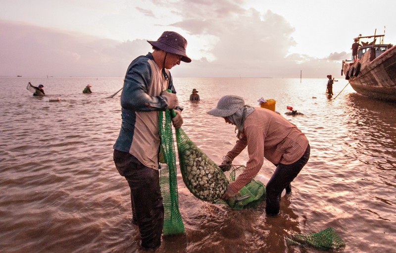 | Ngư dân huyện Gò Công Đông khai thác nghêu. Ảnh: ICAFIS |