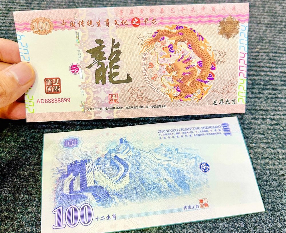 | Tiền hình con rồng Trung Quốc có giá 25.000 đồng/tờ |