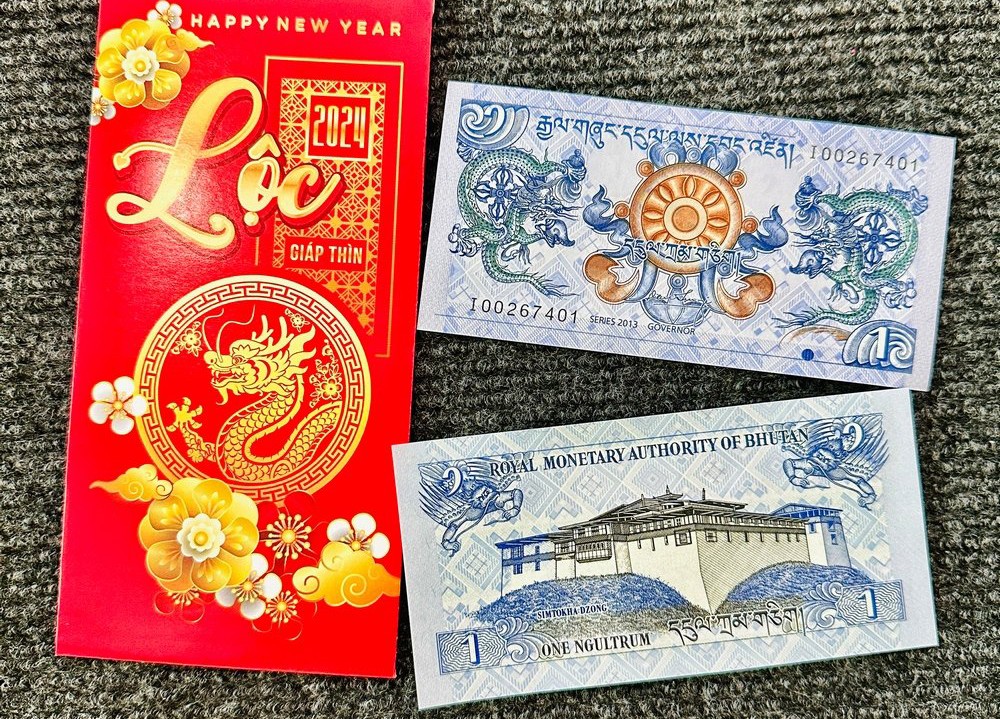 Tiền con rồng Bhutan do Chính phủ Bhutan in ấn và phát hành cũng được anh Hùng nhập về phục vụ nhu cầu đổi tiền lì xì năm 2024. Combo 5 tờ con rồng Bhutan giá 150.000 đồng, combo 10 tờ giá 250.000 đồng.