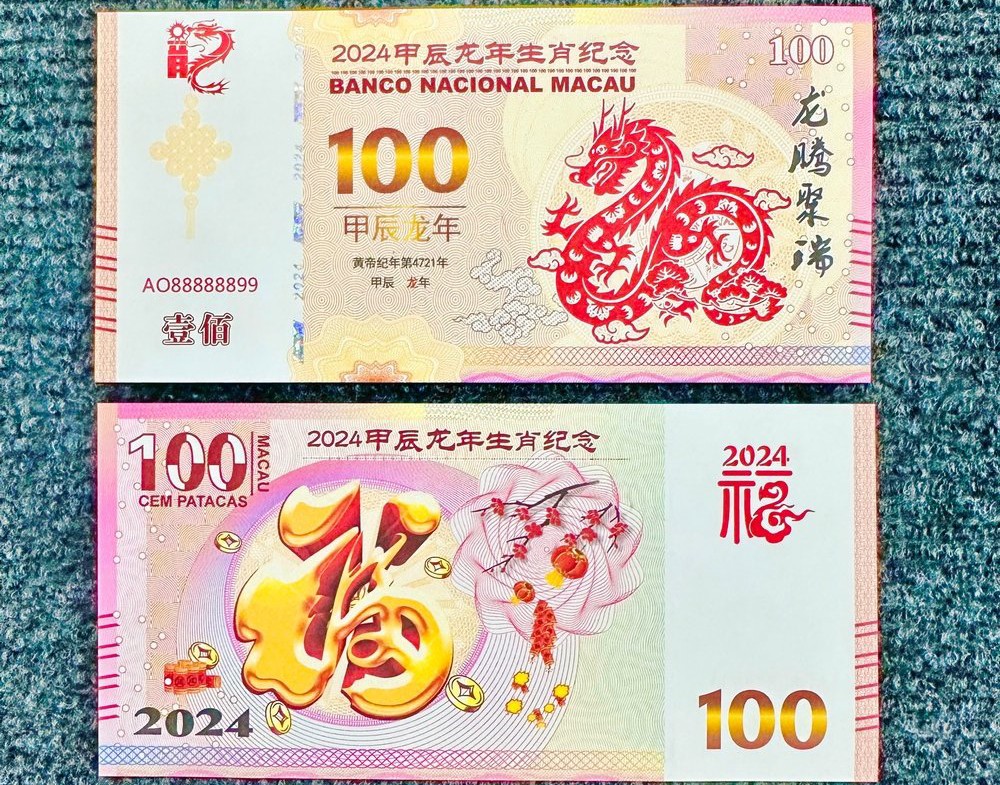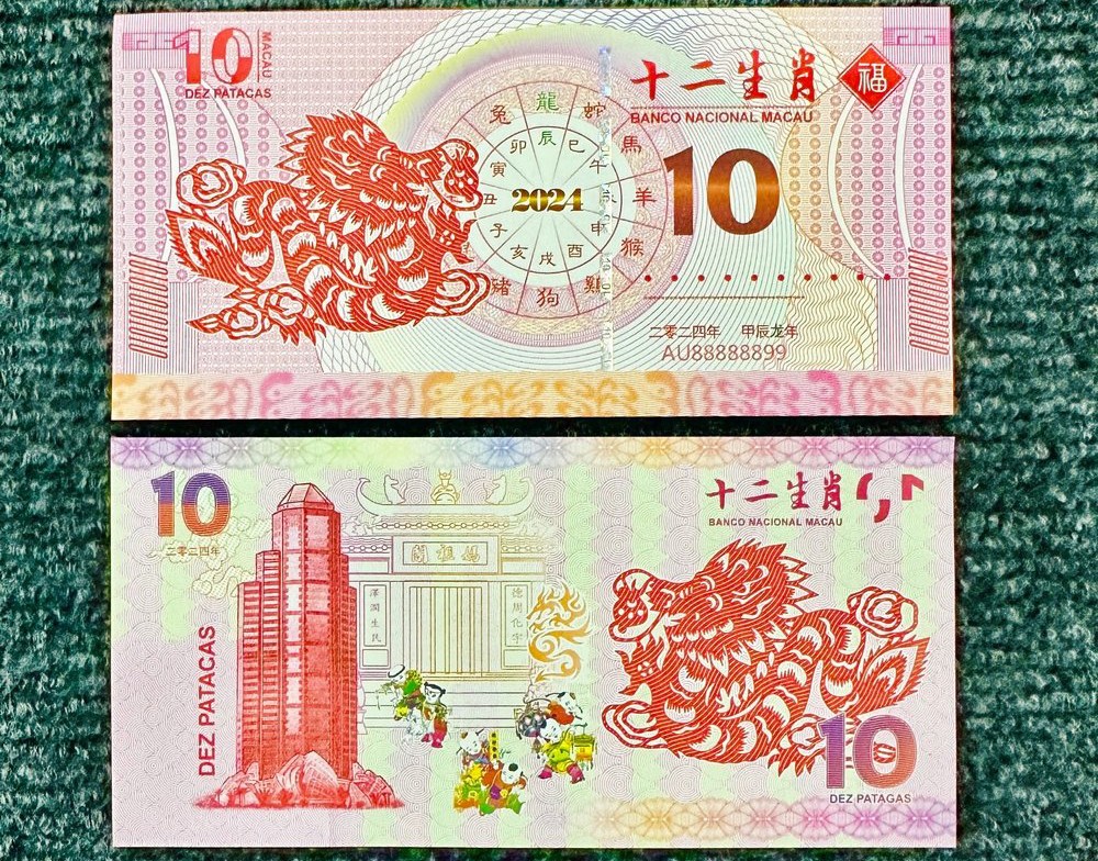 Không chỉ tiền USD, tờ tiền con rồng 10, 100 Macau cũng được nhiều khách hàng quan tâm. Theo anh Hùng, mỗi dịp Tết đến Macau lại cho phát hành tiền hình các con vật biểu tượng cho năm đó. Năm 2024, Macau cho phát hành tiền con rồng Macau 10 và 100 Patacas với hình ảnh chủ đạo là rồng - linh vật của năm Giáp Thìn 2024.
