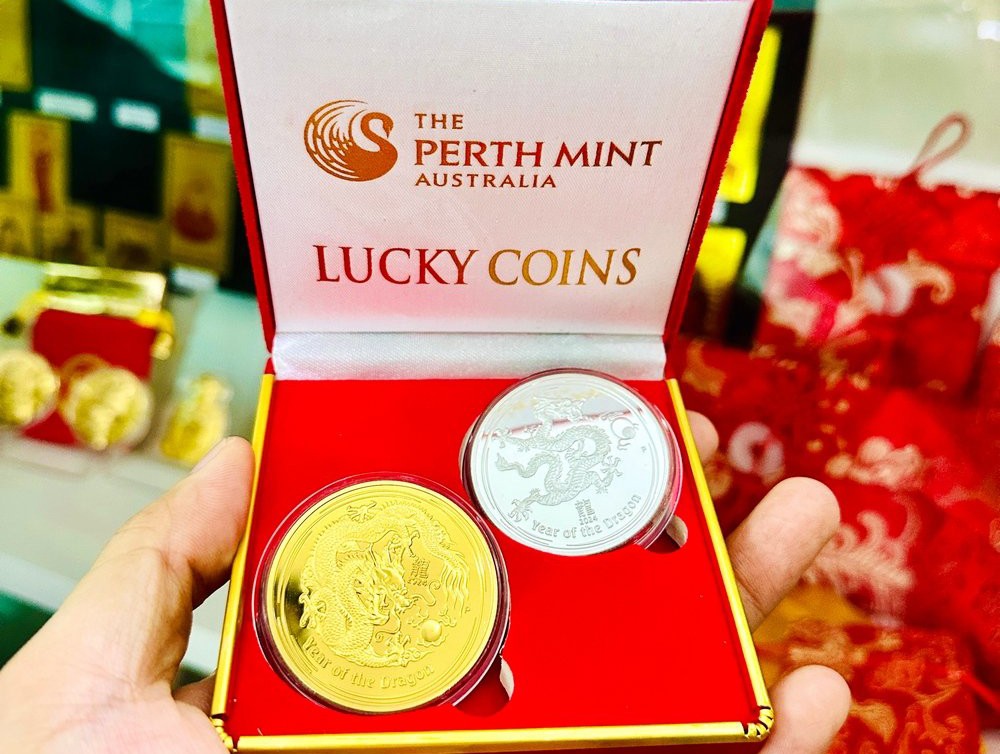 Ngoài tiền giấy, một số cửa hàng còn rao bán tiền xu hình rồng vàng. Theo đó, tiền xu của Úc hình rồng vàng, bạc được sản xuất với mục đích làm quà tặng, lì xì có giá từ 139.000 đồng.