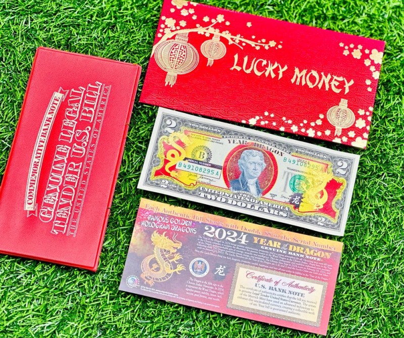Trong đó, tờ 2 USD hình con rồng 2024 được phát hành tại Mỹ dành cho các thị trường châu Á khá phổ biến, có giá từ 100.000 đồng/tờ.