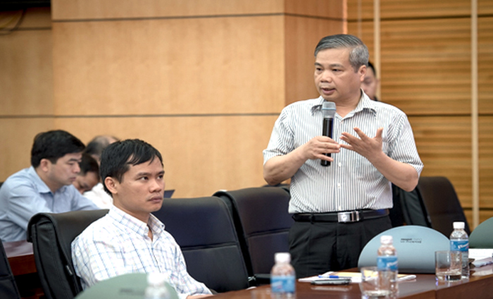 | Ông Nguyễn Huy Hoàn, Phó Vụ trưởng Vụ Khoa học và Công nghệ trình bày báo cáo tổng kết |