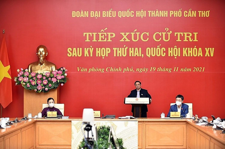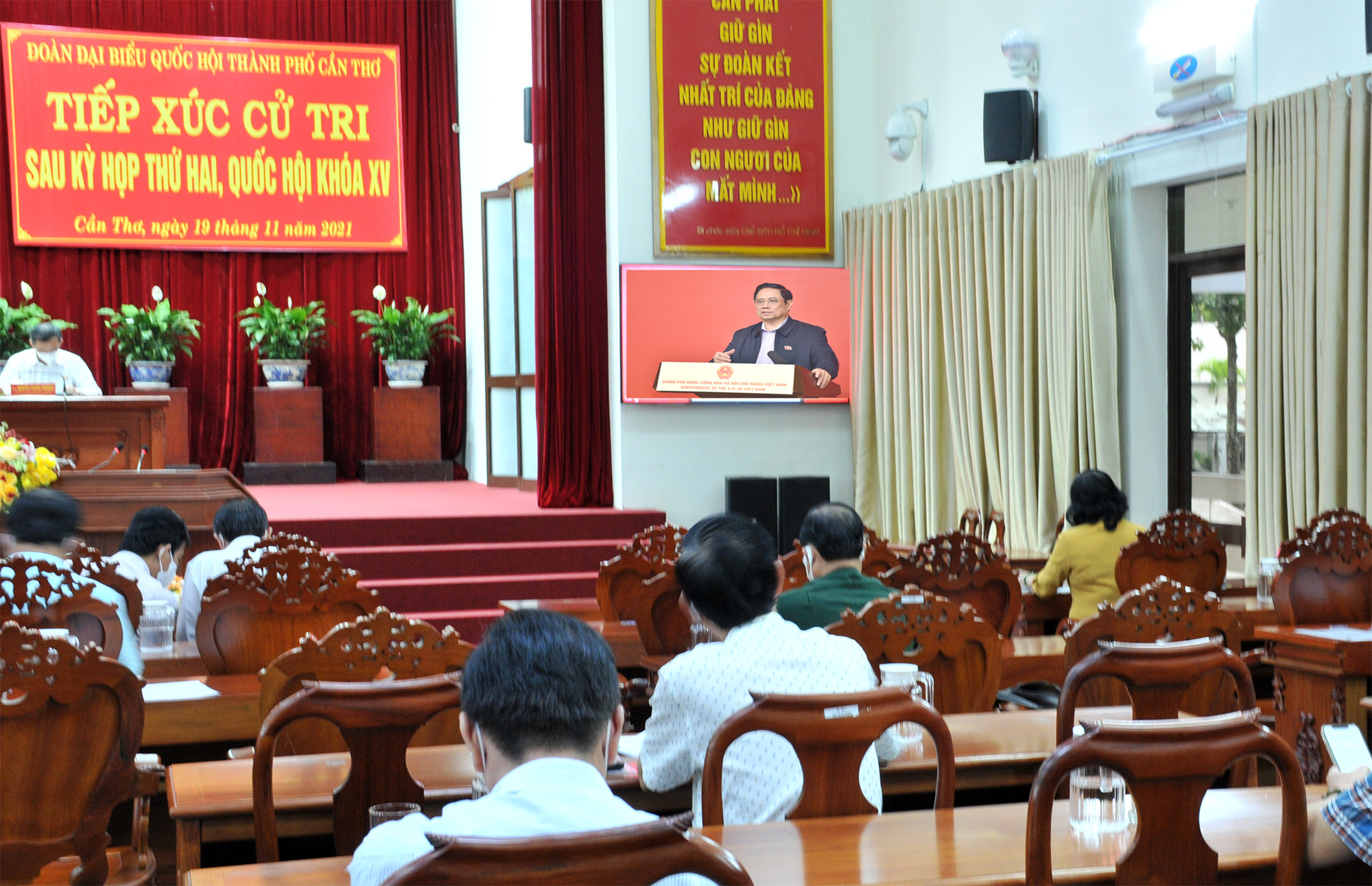 Phát biểu tại buổi tiếp xúc, Thủ tướng Phạm Minh Chính đánh giá cao các phát biểu hết sức trách nhiệm, tâm huyết, thẳng thắn, sát tình hình địa phương và đất nước, đi thẳng vào các vấn đề mà Chính phủ và thành phố có trách nhiệm giải quyết trong thời gian tới đây. Thủ tướng bày tỏ chia sẻ với cử tri về những khó khăn, vất vả, mất mát do dịch bệnh gây ra trên cả nước nói chung và tại Cần Thơ nói riêng.
