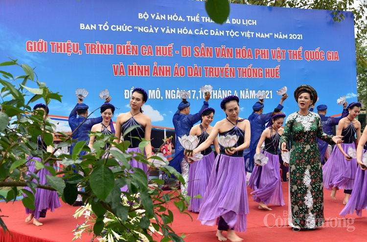 Trình diễn ca Huế - Di sản văn hóa phi vật thể quốc gia và hình ảnh áo dài truyền thống Huế là một hoạt động đặc sắc có ý nghĩa mang đậm bản sắc vùng miền, gắn kết hài hòa giữa văn hóa và du lịch. Mỗi hoạt động đều có sắc màu riêng, những sắc màu của vùng đất cố đô Huế để tạo nên một bức tranh đa dạng, nhiều sắc màu của cộng đồng các dân tộc tại Làng Văn hóa - Du lịch các dân tộc Việt Nam.