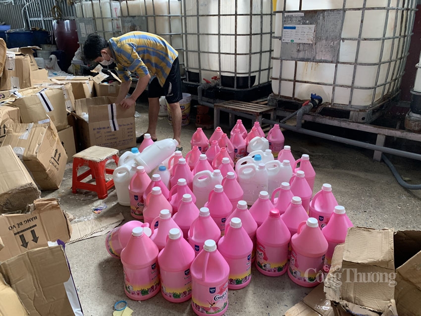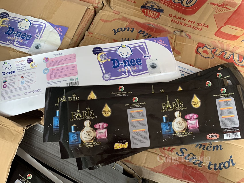 Thời điểm lực lượng chức năng ập đến kiểm tra, các công nhân tại xưởng sản xuất đang làm việc bình thường. Tại hiện trường, Đội QLTT số 17 ghi nhận trên 2.000 can nước giặt nhãn D-nee loại 3,8 lít thành phẩm; 400 can nước giặt nhãn Comfort thành phẩm; 45.000 tờ nhãn dùng cho sản phẩm D-nee; 1.800 vỏ thùng carton có chữ D-nee; 280 vỏ can có nhãn D-nee cùng 5 chiếc môtơ điện đã qua sử dụng dùng để pha chế thành phẩm không có nhãn hiệu.