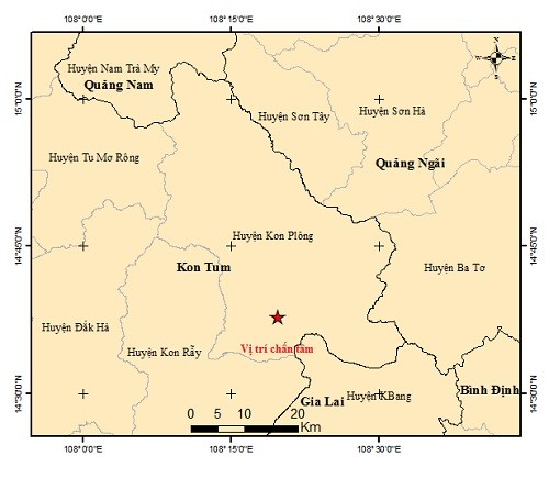 | Vị trí xảy ra trận động đất ngày 8/8 tại Kon Tum |