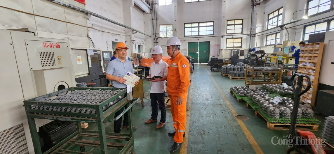 | Công nhân Công ty Điện lực Thái Nguyên tuyên truyền tiết kiệm điện đối với khách hàng sử dụng năng lượng trọng điểm (Ảnh: Thu Hường) |