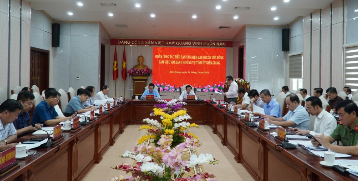 Báo cáo với Đoàn công tác Tiểu ban Văn kiện Đại hội XIV của Đảng đại diện tỉnh Kiên Giang cho biết, trong năm vừa qua, kinh tế của tỉnh có bước phát triển vượt bậc, hiện đứng thứ 2 về quy mô kinh tế trong khu vực đồng bằng sông Cửu Long; thu nhập bình quân đầu người tăng, đạt gần 74 triệu đồng/người/năm vào năm 2023. Cơ cấu kinh tế chuyển dịch theo hướng tích cực, giảm dần tỷ trọng khu vực nông nghiệp, tăng tỷ trọng khu vực dịch vụ. Đời sống nhân dân được cải thiện, nông thôn từng bước được đổi mới, nội bộ đoàn kết thống nhất, chính trị ổn định, Đảng bộ từng bước trưởng thành.