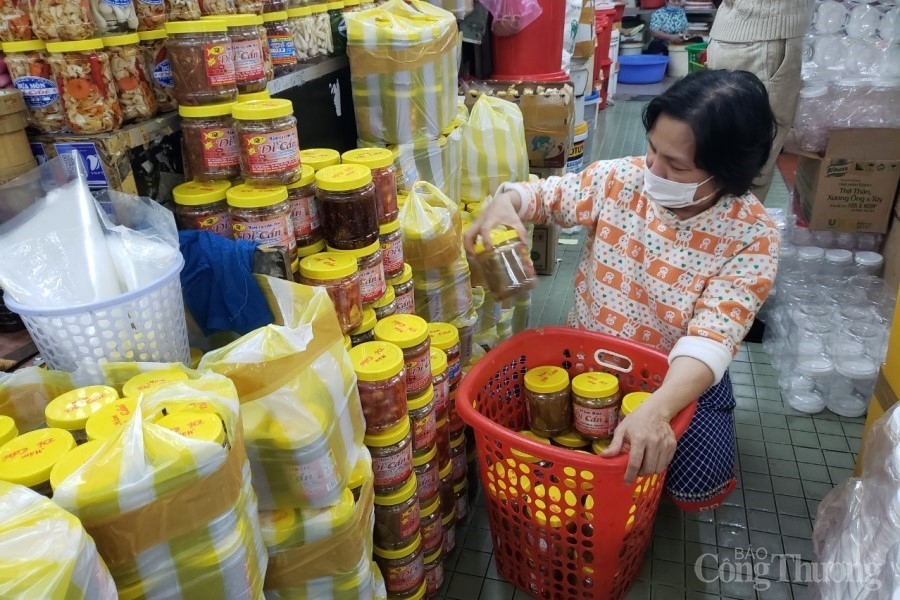 Các chợ truyền thống tại TP. Đà Nẵng đang bước vào cao điểm phục vụ nhu cầu tiêu dùng tăng cao của người dân dịp Tết Nguyên đán. Ảnh chụp tại chợ Cồn