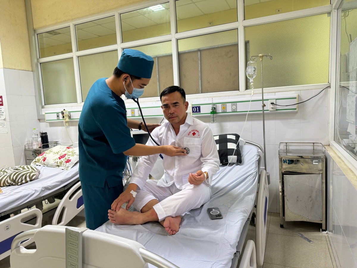 | Bác sĩ Bệnh viện Quân y 13 kiểm tra sức khỏe của Đại tá Nguyễn Văn Sơn. Ảnh: Đơn vị cung cấp |
