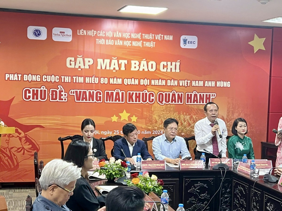 PGS.TS Đỗ Hồng Quân, Chủ tịch Liên hiệp các Hội Văn học nghệ thuật Việt Nam, khẳng định đây không chỉ là dịp để tri ân, ghi nhớ lịch sử, công lao to lớn của lực lượng Quân đội nhân dân Việt Nam trong suốt 80 năm qua mà còn là hoạt động có ý nghĩa chính trị, xã hội, nghệ thuật rất lớn. Sự phát triển của Quân đội nhân dân luôn gắn liền với hoạt động văn học nghệ thuật. Vì vậy, trong niềm tự hào chung về lịch sử còn có sự tự hào về văn nghệ cách mạng Việt Nam qua 80 năm trưởng thành.