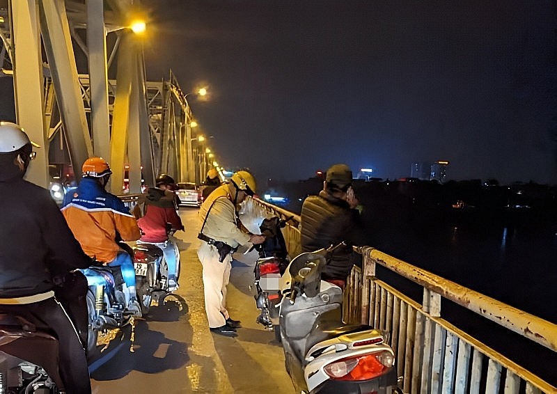 Theo thông tin ghi nhận được, khoảng 21h15 tối 4/3, Đại úy Lê Đức Phong (Cán bộ Đội Cảnh sát giao thông số 1) đang trực làm nhiệm vụ ở khu vực cầu Chương Dương thì được người dân hốt hoảng chạy lại báo tin có một nam thanh niên vừa nhảy xuống sông Hồng tự tử.