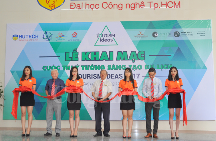 | Lãnh đạo Trường đại học công nghệ TP. Hồ Chí Minh và các đại biểu cắt băng khai mạc Cuộc thi Tourism Ideas 2017 |