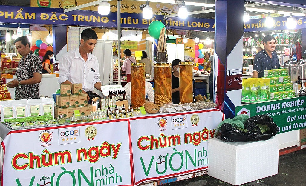 Sản phẩm OCOP được trưng bày tại điểm giới thiệu và bán sản phẩm OCOP Long An (Ảnh: Mai Hương)