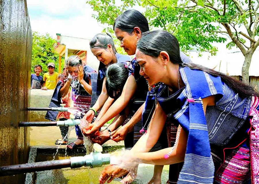 Người dân đầu tư xây dựng công trình nước sạch từ vốn vay chính sách