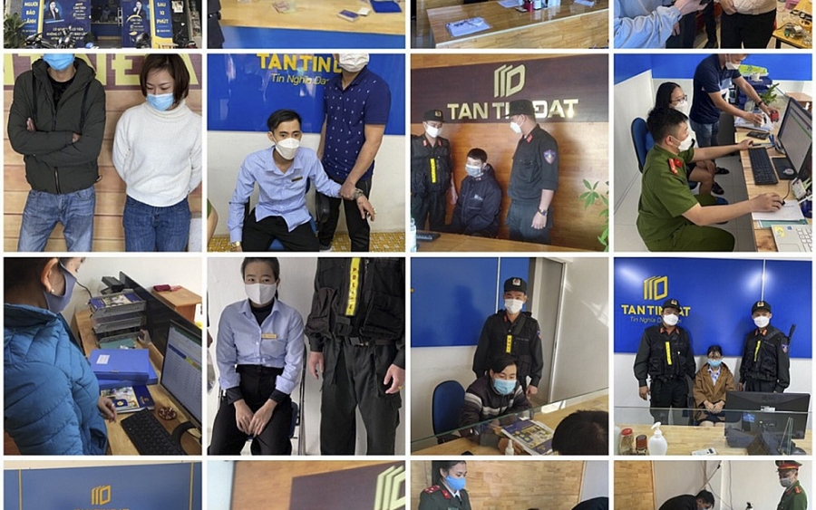 Hay vào ngày 15/12/2021, Công an TP. Vinh chủ trì, phối hợp với công an các tỉnh, thành phố, khám xét khẩn cấp đối với 51 cơ sở văn phòng đại diện của Công ty TNHH dịch vụ tổng hợp Tân Tín Đạt tại 28 tỉnh, thành phố trên cả nước, bắt giữ 22 đối tượng về hành vi “Cho vay lãi nặng trong giao dịch dân sự”.