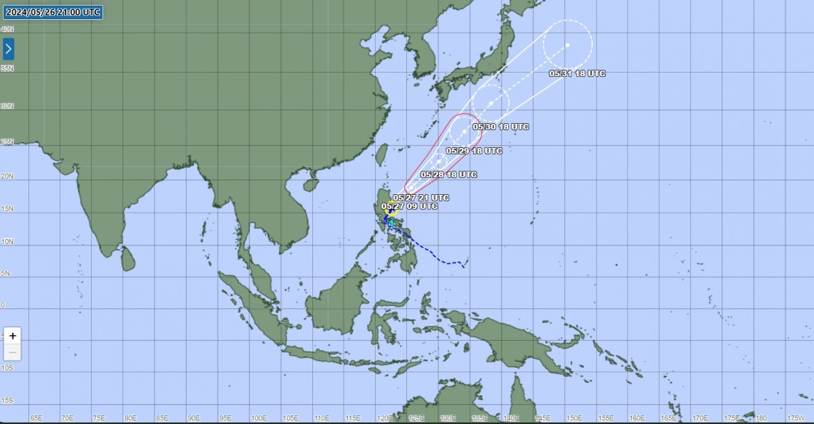 | Đường đi của cơn bão Ewiniar trên khu vực Tây Bắc Thái Bình Dương, thời điểm 21h ngày 26/5/2024. (Nguồn: Trung tâm Dự báo KTTV Quốc gia) |