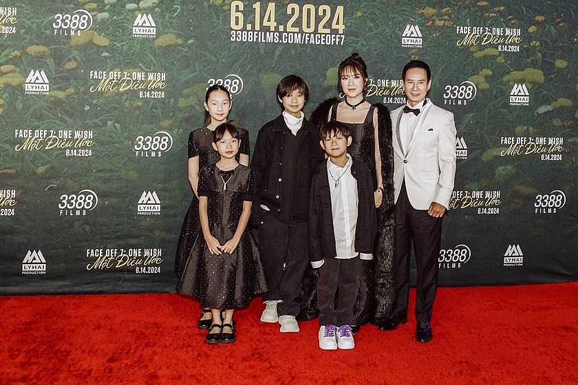 | Gia đình Lý Hải tại lễ ra mắt phim Lật Mặt tại Mỹ |
