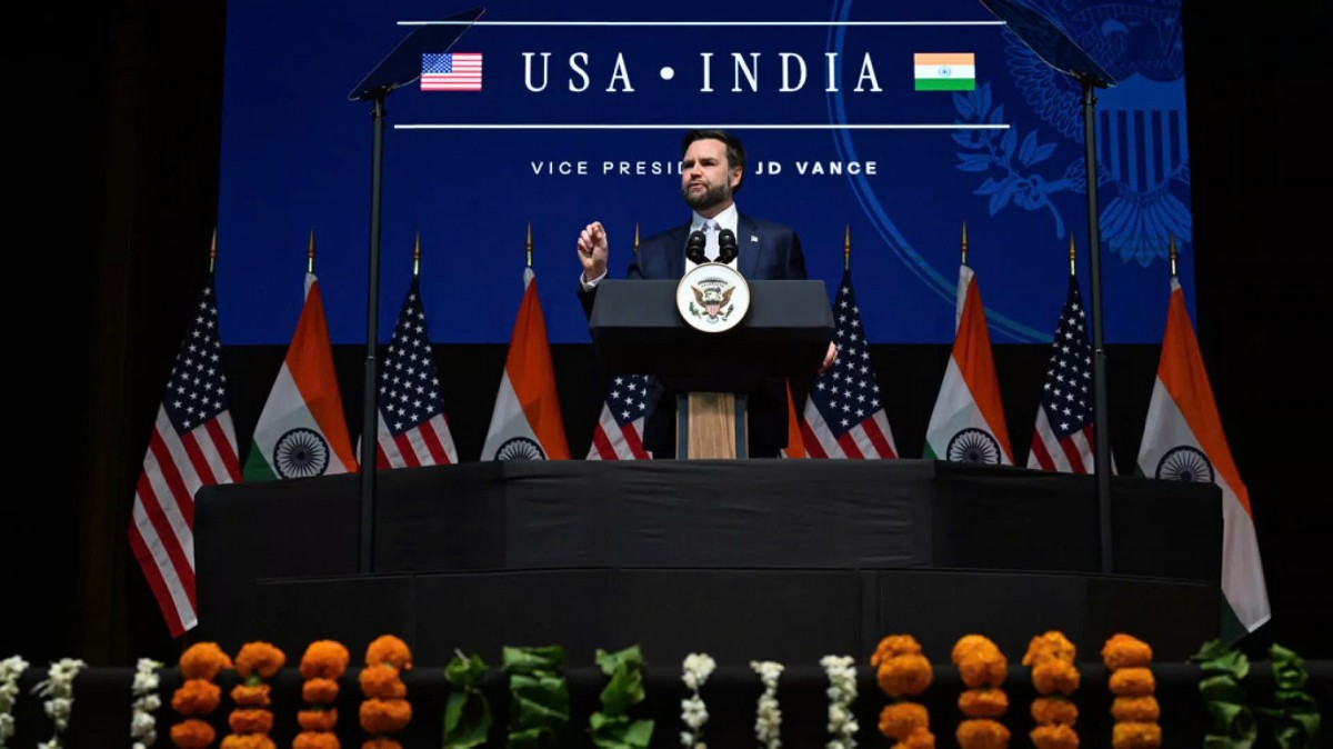 | Phó Tổng thống Mỹ JD Vance phát biểu tại Trung tâm Quốc tế Rajasthan ở Jaipur, Ấn Độ, vào ngày 22/4/2025. Ảnh: The New York Times |