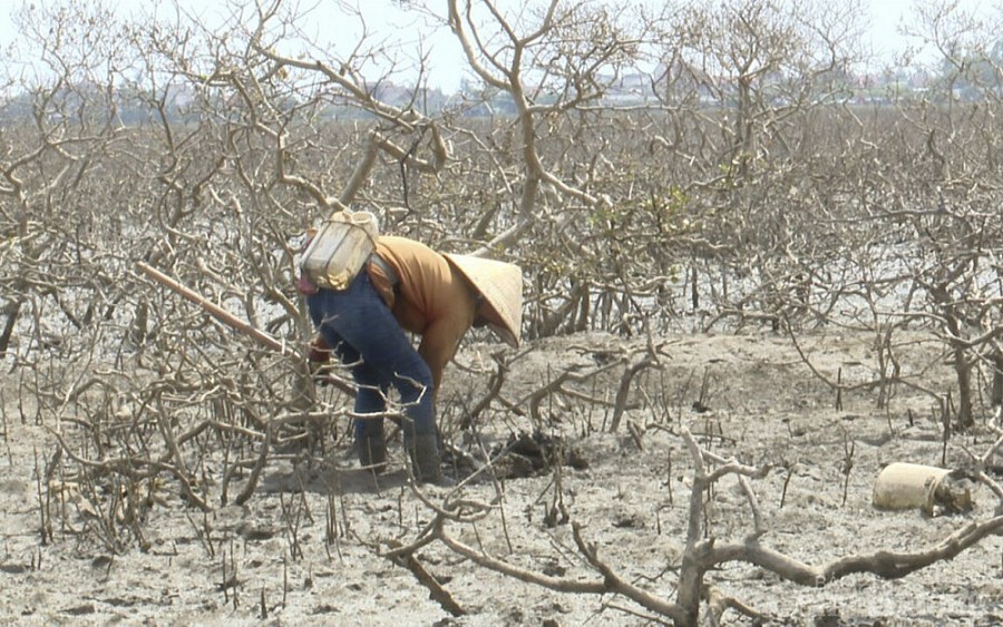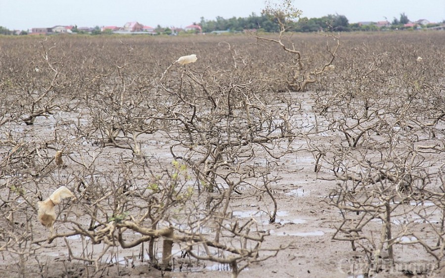 | Hơn 25ha rừng ngập mặn tại bãi triều sông Vịnh, Kỳ Hà, thị xã Kỳ Anh bị chết khô, khiến người dân mất đi nguồn thu nhập lớn hải sản |