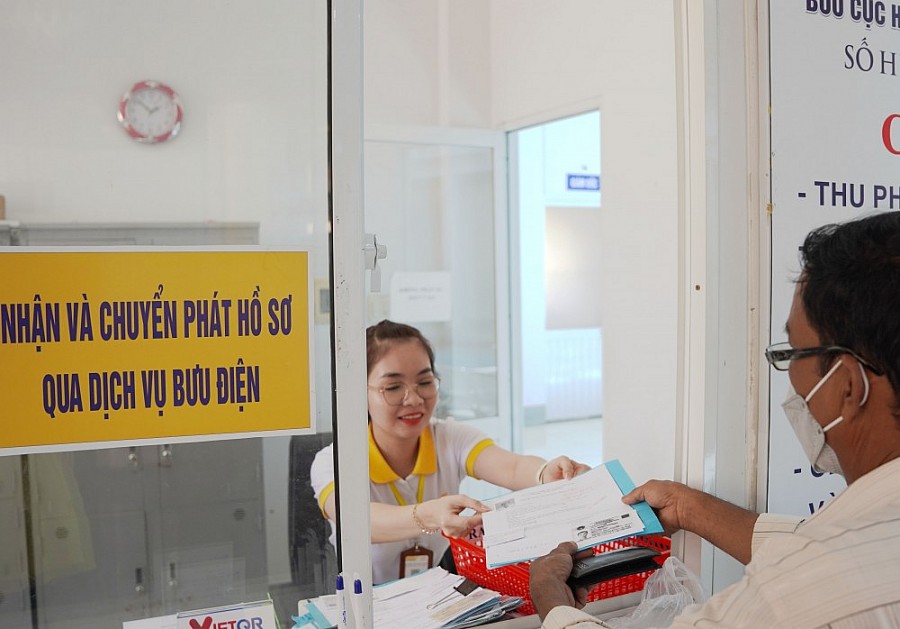 | Nhân viên Bvưu điện tham gia tiếp nhận hồ sơ tại Bộ phận một cửa các cấp |