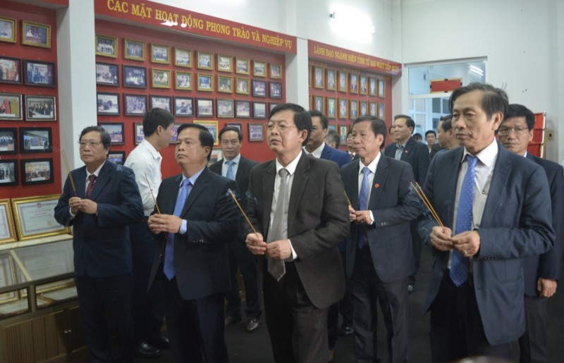 Đồng chí Hồ Quốc Dũng - Bí thư Tỉnh ủy dâng hương tại Phòng Truyền thống Chi bộ Nhà máy đèn Quy Nhơn |