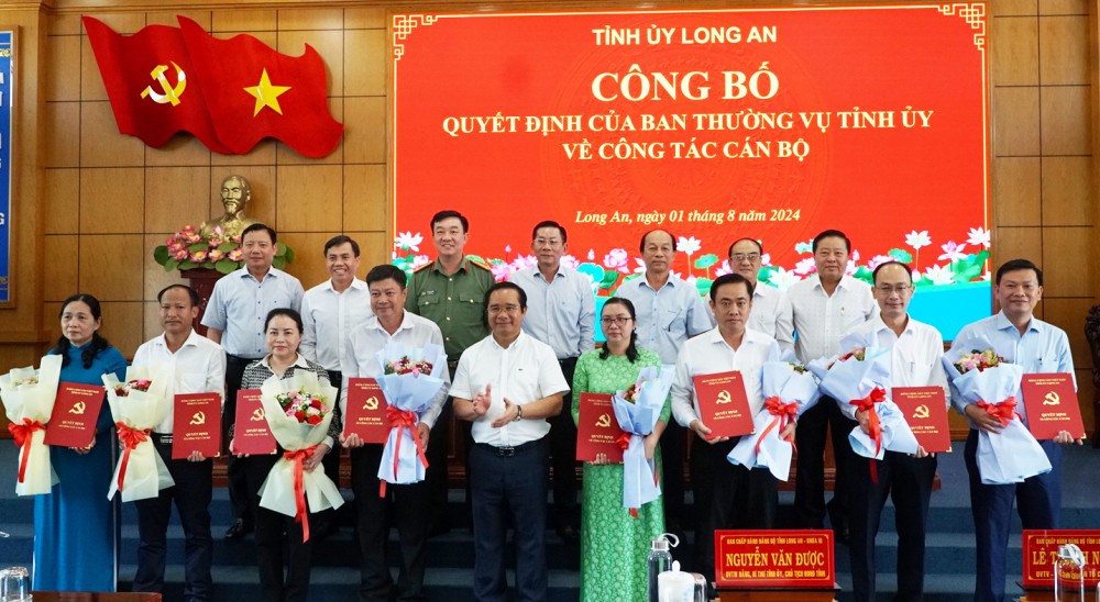 Sáng 1/8, Tỉnh ủy Long An tổ chức công bố các quyết định của Ban Thường vụ Tỉnh ủy về công tác cán bộ. Ủy viên Ban Chấp hành Trung ương Đảng, Bí thư Tỉnh ủy, Chủ tịch Hội đồng Nhân dân tỉnh Nguyễn Văn Được chủ trì buổi lễ.