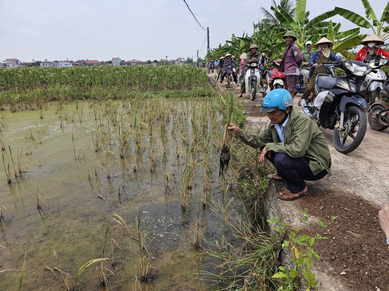 Trong đó, tại Hợp tác xã Thụy Tân, xã An Tân, theo báo cáo của địa phương về kết quả thống kê, rà soát ban đầu thì 100% diện tích (114,45ha) lúa bị thiệt hại trên 70% năng suất và không cho thu hoạch.