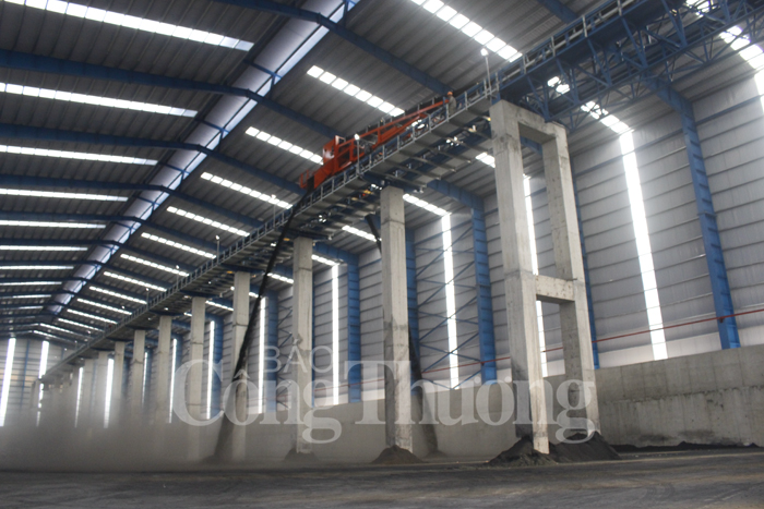 Với kết cấu móng cọc khoan nhồi, đường kính cọc D600, phía trên là móng bê tông cốt thép (BTCT). Khung thép nhà bằng thép tổ hợp, tường chắn xung quanh bằng BTCT dày 25cm, cao 6m và nền được đổ bê tông dày 30cm sẽ được chất lượng than vào kho không bị lẫn tạp chất. Bên trong nhà kho được trang bị đầy đủ các thiết bị chiếu sáng để đảm bảo việc vận hành các thiết bị làm việc vào ca 2, ca 3 và các hệ thống cứu hỏa.