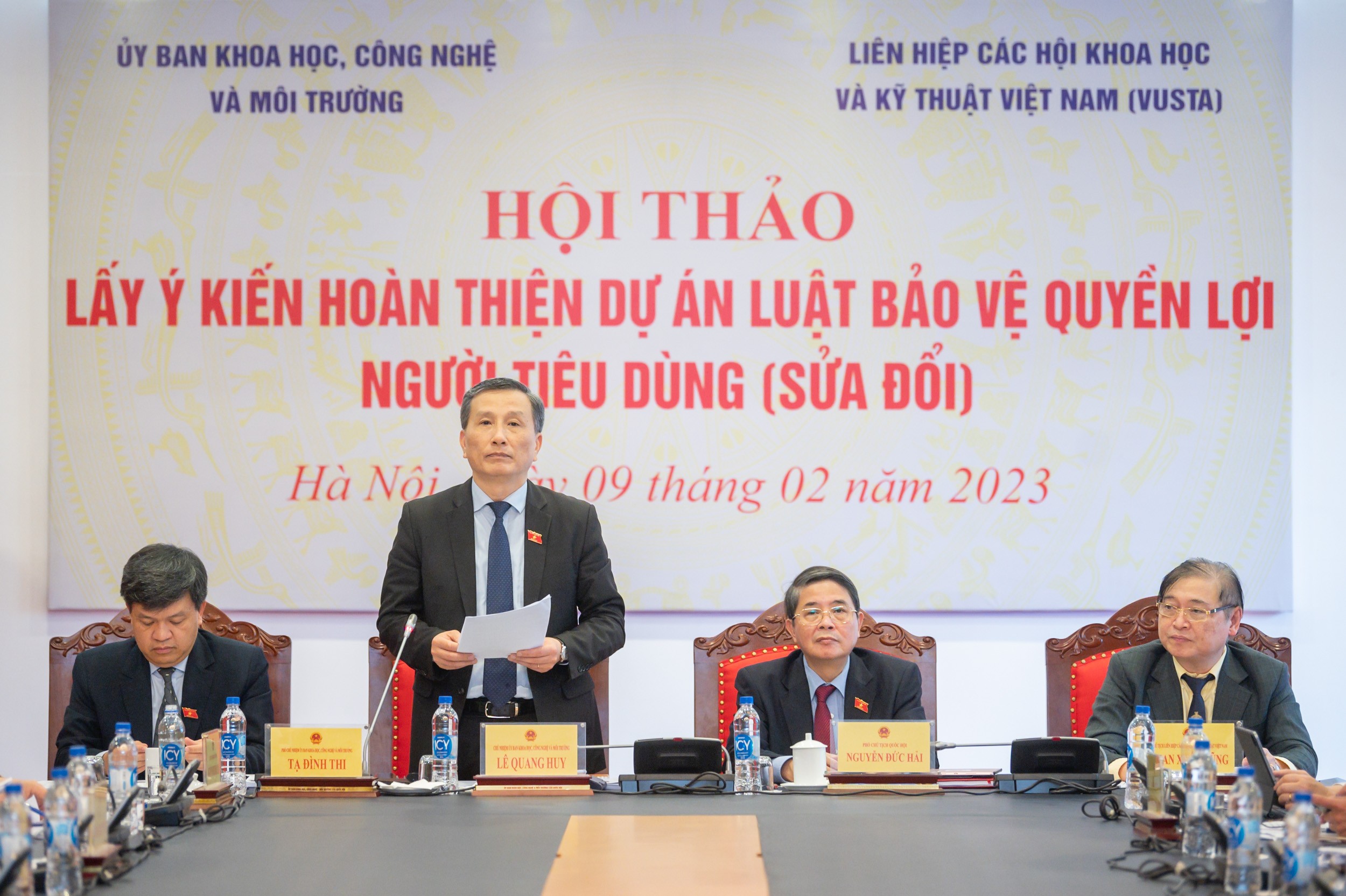 Tiếp tục hoạt động thẩm tra dự án Luật Bảo vệ quyền lợi người tiêu dùng (sửa đổi), chiều ngày 9/2, Ủy ban Khoa học, Công nghệ và Môi trường của Quốc hội phối hợp với Liên hiệp các Hội Khoa học và Kỹ thuật Việt Nam tổ chức Hội thảo lấy ý kiến hoàn thiện dự án Luật Bảo vệ quyền lợi người tiêu dùng (sửa đổi).