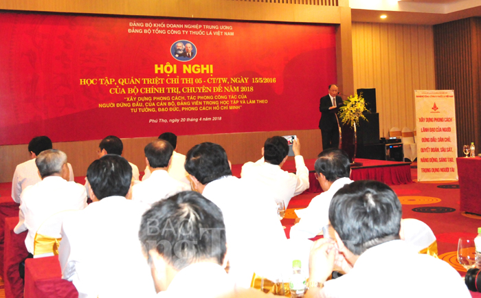 Trước đó, ngày 20/4/2018, Đảng bộ Tổng công ty Thuốc lá Việt Nam tổ chức hội nghị học tập quán triệt Chỉ thị số 05- CT/TW ngày 15/5/2016 của Bộ Chính trị, chuyên đề năm 2018 “Xây dựng phong cách, tác phong công tác của người đứng đầu, của cán bộ, đảng viên trong học tập và làm theo tư tưởng, đạo đức, phong cách Hồ Chí Minh”. Tại hội nghị, đội ngũ lãnh đạo chủ chốt, lãnh đạo các tổ chức Đảng trong toàn Đảng bộ đã nghe GS.Hoàng Chí Bảo trao đổi, quán triệt cùng việc làm rõ các nội dung quan trọng của Chỉ thị 05 của Bộ Chính trị.
